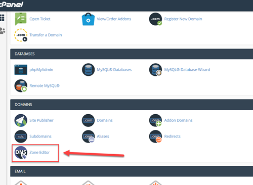 Once logged into cPanel, locate the Zone Editor in the Domains section